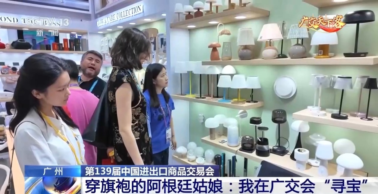 还没从美容仪带来的惊喜中平复,墨西娜又在灯具展位前驻足,仔细询问价格、产品认证以及当地销售情况。虽然这只是她第二次参加广交会,却已是十分娴熟的“寻宝行家”。得知不少产品尚未进入阿根廷市场,她更是如获至宝,当即与参展商洽谈价格,瞄准这片有待开拓的空白市场。