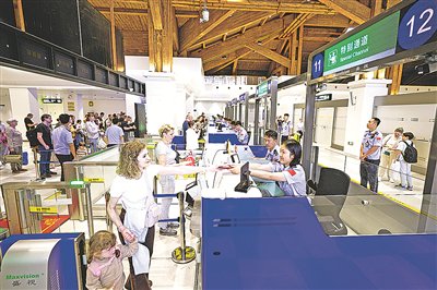 2026年3月27日,三亚凤凰边检站执勤民警为入境旅客办理边检手续。