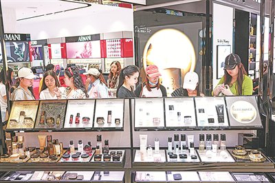 2026年3月25日,顾客在海口日月广场免税店选购商品。