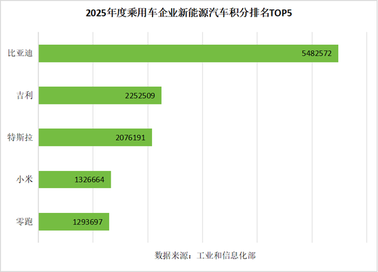 2026年4月7日,工业和信息化部发布了2025年度乘用车企业平均燃料消耗量与新能源汽车积分核算结果,取得断层领先双榜第一的成绩。其中,平均燃料消耗量积分为14818718分,新能源汽车积分为5482572分,均大幅领跑全行业,甚至超过多家车企总和。