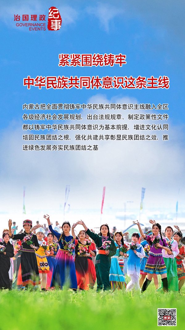 ◇近年来,内蒙古把全面贯彻铸牢中华民族共同体意识主线融入全区各级经济社会发展规划,出台法规规章、制定政策性文件都以铸牢中华民族共同体意识为基本前提,增进文化认同培固民族团结之根,强化共建共享彰显民族团结之效,推进绿色发展夯实民族团结之基。