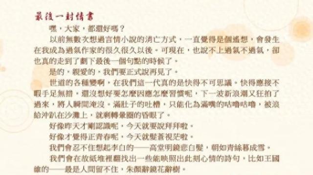“当AI变得无所不能时,创作者都在问:‘我们还有存在的必要吗?我们还有生存的空间吗?’其实是有的,只是,目前纯粹以文字表达出的美丽与诉说出的故事,无法在这影音炫丽与热闹成为主流的市场拥有一片属于自己的天地。”她的叩问,是一位作家的退场,也像一封写给数字时代的告别书——在AI与影音的双重夹击下,文字创作者是否已成为“濒危物种”?