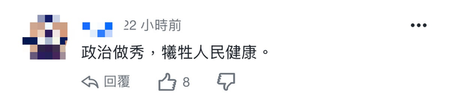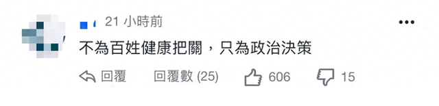 此举迅速引发岛内质疑,网友对民进党当局这一做法骂声一片。有人批评说,台当局此举“不为百姓健康把关,只为政治决策”“政治作秀,牺牲人民健康”。↓