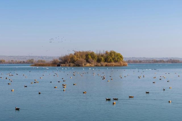 初冬时节,作为候鸟迁徙的中亚通道和东亚—澳大利亚通道两条线路的重要中转站,河西走廊吸引了大量候鸟在此停歇休憩、越冬栖息。河西走廊地处甘肃省西北部,东西长约1000公里,南北最宽处近200公里,最狭窄处仅数公里。得益于祁连山冰雪融水的滋养,这条狭长走廊中形成了片片绿洲。区域内河流、湖泊、湿地与人工库塘星罗棋布,为候鸟提供了良好的栖息环境和丰富的食物资源,使这里成为我国西北候鸟迁徙路线上不可或缺的“生态驿站”。