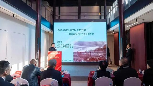 上海师范大学教授苏智良以“从黄浦诞生的平民保护方案——以南市安全区为中心的考察”为题作主旨演讲,谈到法国友人饶家驹建立的南市安全区存续963天,保护了超30万难民,“其人道主义实践影响了南京、汉口等地的安全区建设,更推动了《日内瓦第四公约》的制定,是黄浦抗战史中极具温度的重要篇章。”