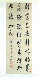 在临帖阶段,康熙的草书学习怀素,楷书学习欧阳询、颜真卿,以颜楷为主,临摹过王羲之、颜真卿、米芾、赵孟頫、董其昌等各家,最为推崇董其昌。董其昌是明末书法大家,他融合晋人书韵、唐人书法和宋人书意,自成一体。康熙曾赞美董其昌书法,“天姿迥异……非诸家所能及也”,又搜罗董其昌海内真迹,临摹学习。