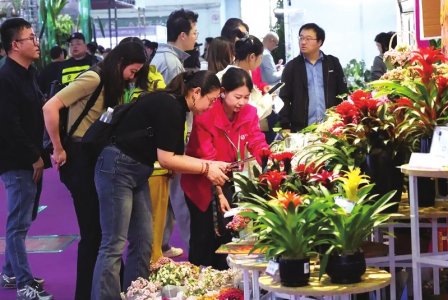 4月10日,参观者在2026中国国际花卉园艺展览会现场选购花卉。 图据工人日报