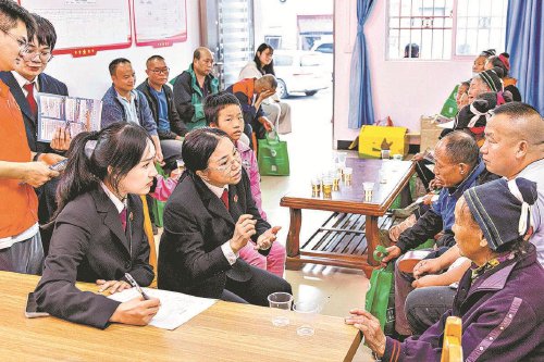 近日,广东省清远市检察院携手连南瑶族自治县检察院在该县大坪镇大坪村村委会会议室共同开展法治宣传活动。活动中,检察干警围绕子女抚养费纠纷、法律援助申请等问题,与村民面对面交流,一一解答大家的疑问。