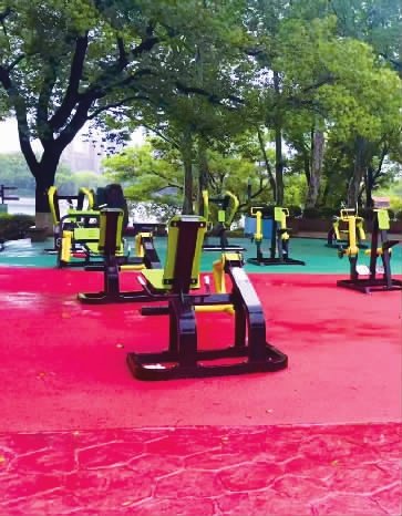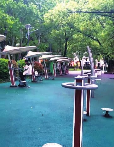 4月21日,长沙,春雨中的湖南烈士公园一片绿意盎然,2000平方米的健身广场上,一些老人在有遮挡的健身器材上锻炼。今年4月,公园全新投用了一批专业拉伸架、力量训练器械,老牌康养器材与健身房级专业器械比邻而立,升级后的公共健身空间,成了长沙市民的“森林健身房”。