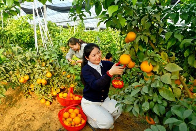 初冬时节,芝山村曹庄富硒生态园里,社员们穿梭采摘“红美人”柑橘,丰收画卷喜人。