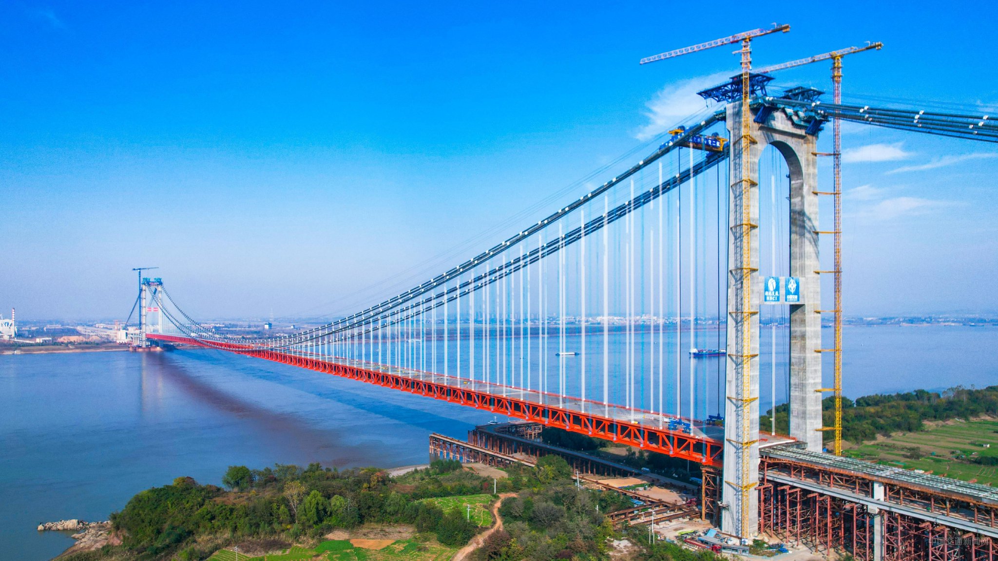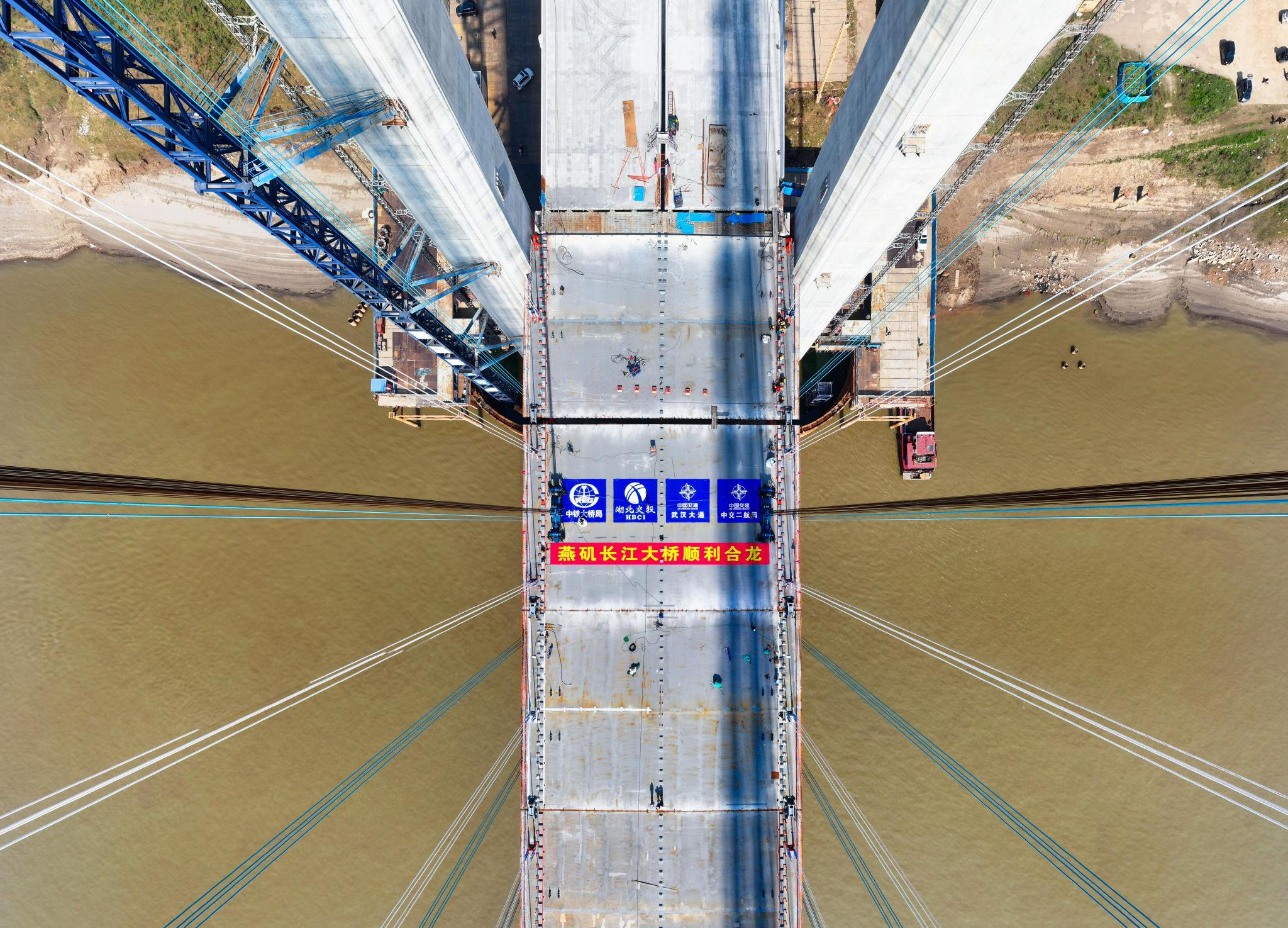 11月22日10时许,冬日暖阳照耀在长江湖北黄冈与鄂州水域,随着最后一段巨型钢桁梁精准吊装到位,由湖北交投投资、中交二航局、中铁大桥局承建的世界最大跨径四主缆悬索桥——燕矶长江大桥顺利合龙,万里长江再添一道“飞虹”。建成通车后,黄冈至鄂州花湖国际国际机场实现15分钟直达。