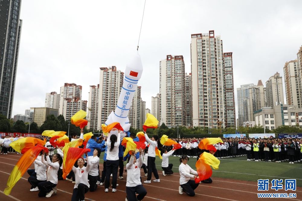 航拍昆明润城学校2025年体育·读书·科技“三节”活动现场(11月22日摄)。
