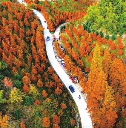 连日来,湖南大部分地区以晴天间多云天气为主,白天气温达20℃左右,居民纷纷走出家门。左图:11月23日,长沙市芙蓉区滨河路,冬日暖阳下,道路两旁金黄的梧桐树叶为城市增添了一道亮丽的风景线。右图:11月23日,怀化市鹤城区帽子坡泸阳国有林场,百亩水杉换上红装,在冬日暖阳下如火如荼,吸引众多市民前来打卡,感受自然之美。