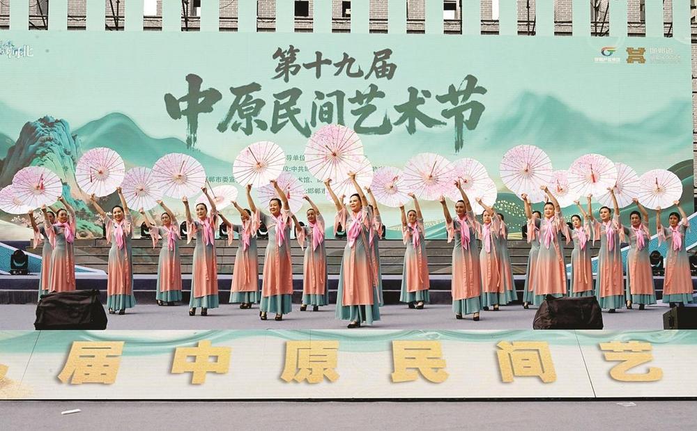 11月23日,第十九届中原民间艺术节“礼赞盛世、舞韵华章”舞蹈专场在邯郸道历史文化街区举行。图为演出现场。