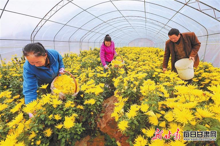 近日,临洮县康家集乡的农户正在采摘金丝皇菊。临洮县近年来不断调整优化产业结构,大力发展菊花种植,以产业发展带动农业增效、农民增收,助力乡村振兴。新甘肃·甘肃日报通讯员 王克贤