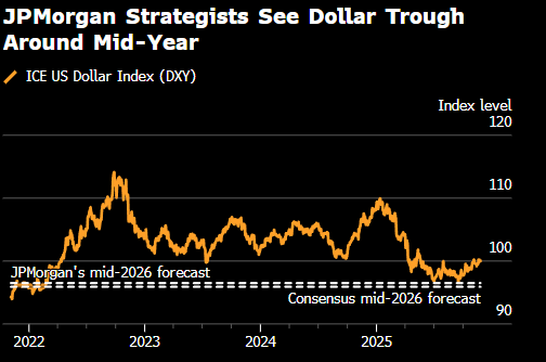 更广泛地说,摩根大通关注的风险在于,美国就业市场或增长预期的反弹可能促使交易员不仅排除明年降息的可能性,而且愈发上调对潜在加息的押注。“2026年对美元净看跌,尽管幅度和广度都不如2025年,”Chandan及其同事写道。