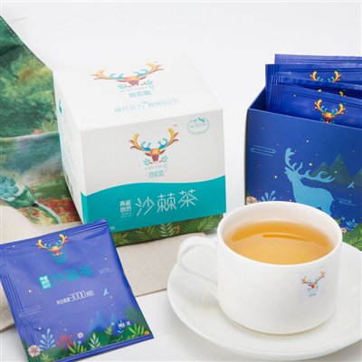 甄选原料:好茶需要好原料,鹿欢喜沙棘茶精选青藏高原世界沙棘谷基地纯天然小果沙棘嫩叶,通过人工方式采摘,为了最大程度地保留独属青藏高原沙棘嫩叶的营养价值,采用绿茶工艺制作,历经摊晒、杀青、揉捻、炒制等多道工序制作而成,保留了沙棘叶中人体所需的各种营养物质。