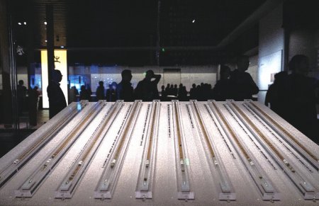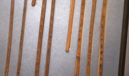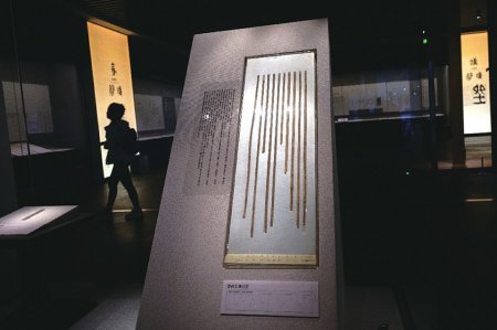 湖北省博物馆展出的我国迄今发现时代最早的竹简——曾侯乙墓竹简。