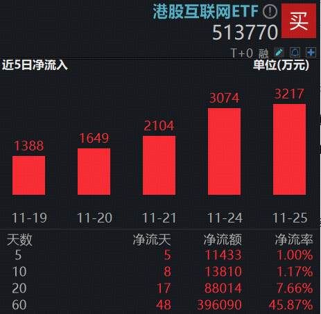 作为港股AI核心资产,港股互联网ETF(513770)亦获资金持续涌入。上交所数据显示,港股互联网ETF(513770)近5日连续吸金合计1.14亿元。