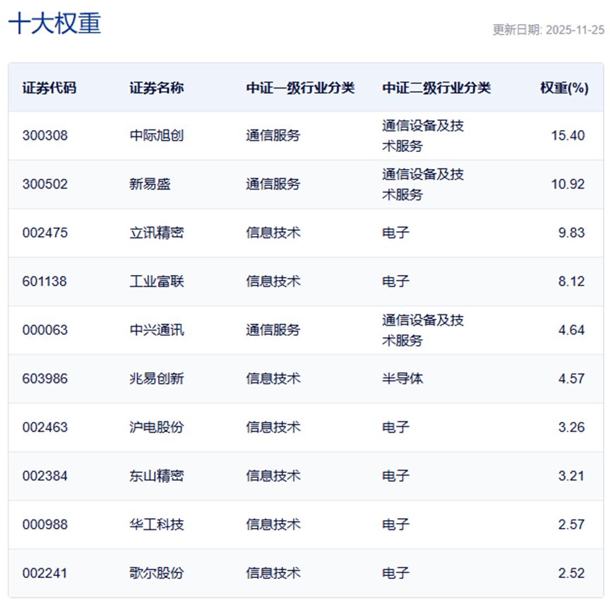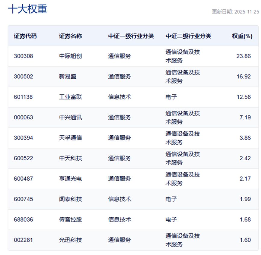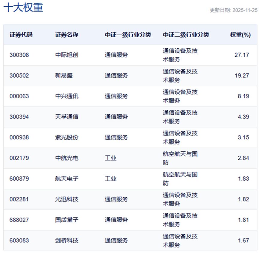 中证全指通信设备指数从中证全指样本股中按中证行业分类方法选出通信设备行业股票。前十大权重股涵盖了大量5G概念股,指数历史表现优异,成长性高。