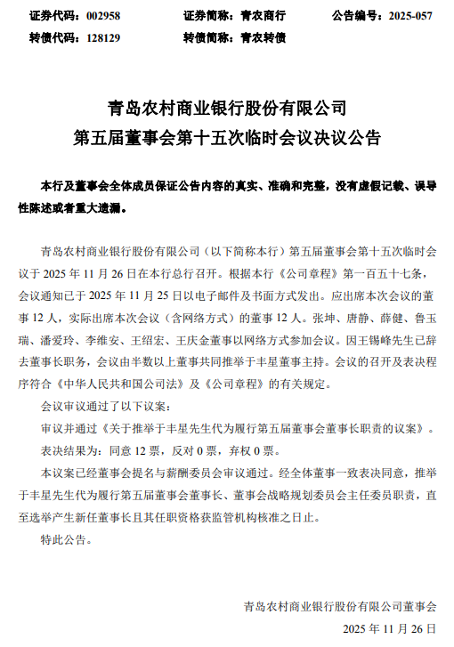 同日,第五届董事会第十五次临时会议审议并通过《关于推举于丰星先生代为履行第五届董事会董事长职责的议案》,推举于丰星代为履行第五届董事会董事长、董事会战略规划委员会主任委员职责,直至选举产生新任董事长且其任职资格获监管机构核准之日止。