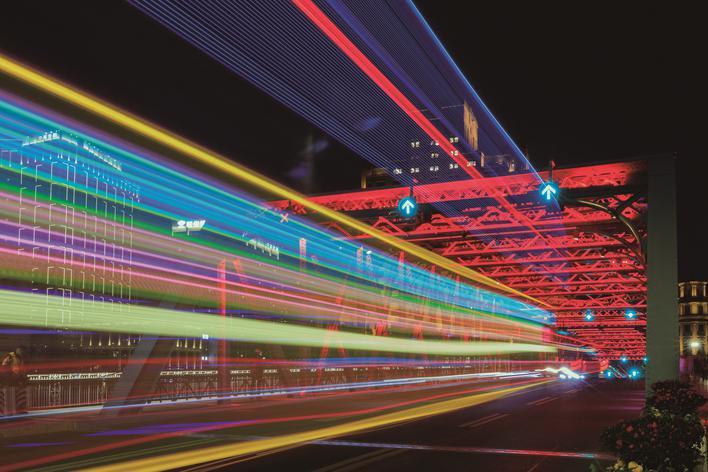车流 作者:董静 点评:长曝光定格的彩色光带像流动的霓虹丝带,让画面满含速度感,为百年外白渡桥注入新的活力。红色桥梁钢架是厚重的“底色”,蓝、黄、绿的光轨是轻盈的“流动色”,冷暖光影碰撞出上海的科幻氛围,既具现代感,又富含艺张力。