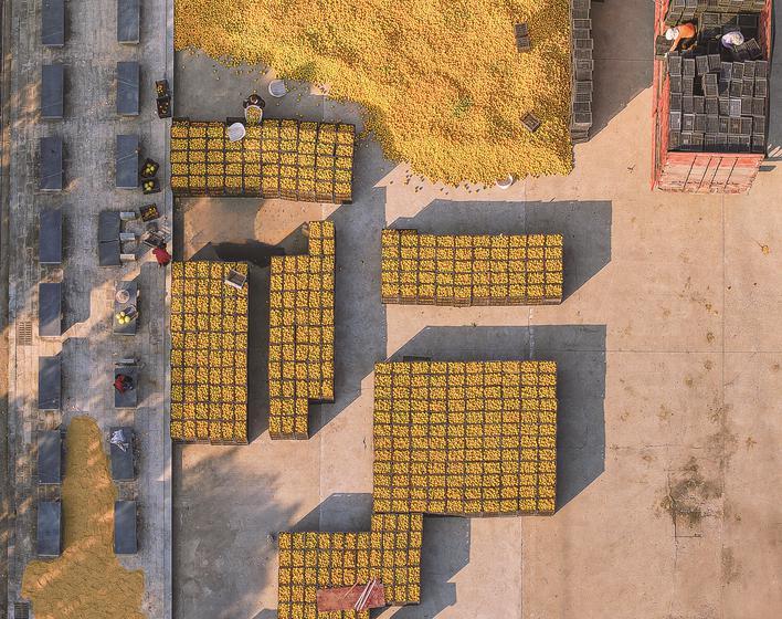 橘香满园 作者:邬振东 点评:成筐的橘子与堆积如山的果实,以饱满暖黄色调将“丰收的喜悦”烘托得恰到好处。规整的筐具、零散的果堆与忙碌的人影,让画面拥有“几何秩序美”,又带着鲜活的劳作气息。