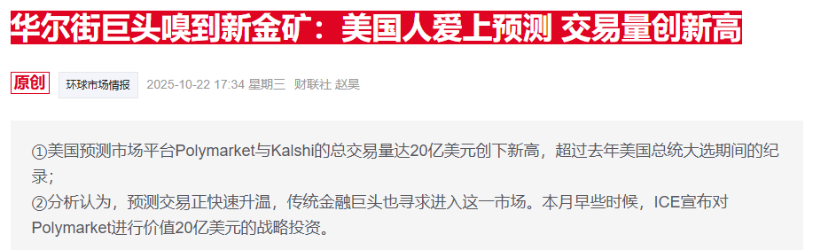 分析认为,这波交易热潮清楚地显示出,允许投资者对现实事件结果下注的“预测交易所”正快速升温,连传统金融巨头如芝加哥商品交易所集团(CME)和洲际交易所(ICE)也寻求进入这一新兴市场。