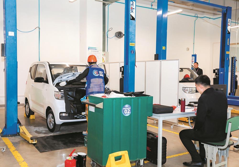 查看车身外观、检查车辆电源、判断车辆故障……在成都市第七届技工院校职业技能竞赛“新能源汽车检测与维修”比赛现场,选手们正有条不紊地对汽车进行检查。“这场比赛不仅是技能提升的‘练兵场’,更是交流学习的‘大平台’。”刚完成实操考核的选手邹金铃激动地说道,“通过比赛,让我看到了自身的差距,提升了我的操作水平和技能素养。”