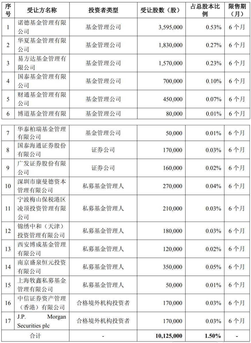 17家投资者获配,摩根大通等境外机构参与认购