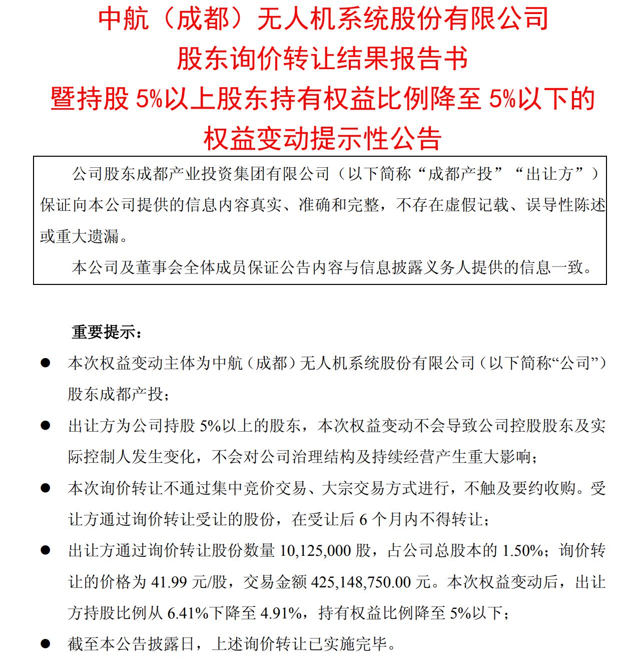 成都产投询价转让中无人机,又是其投资生涯的经典案例。