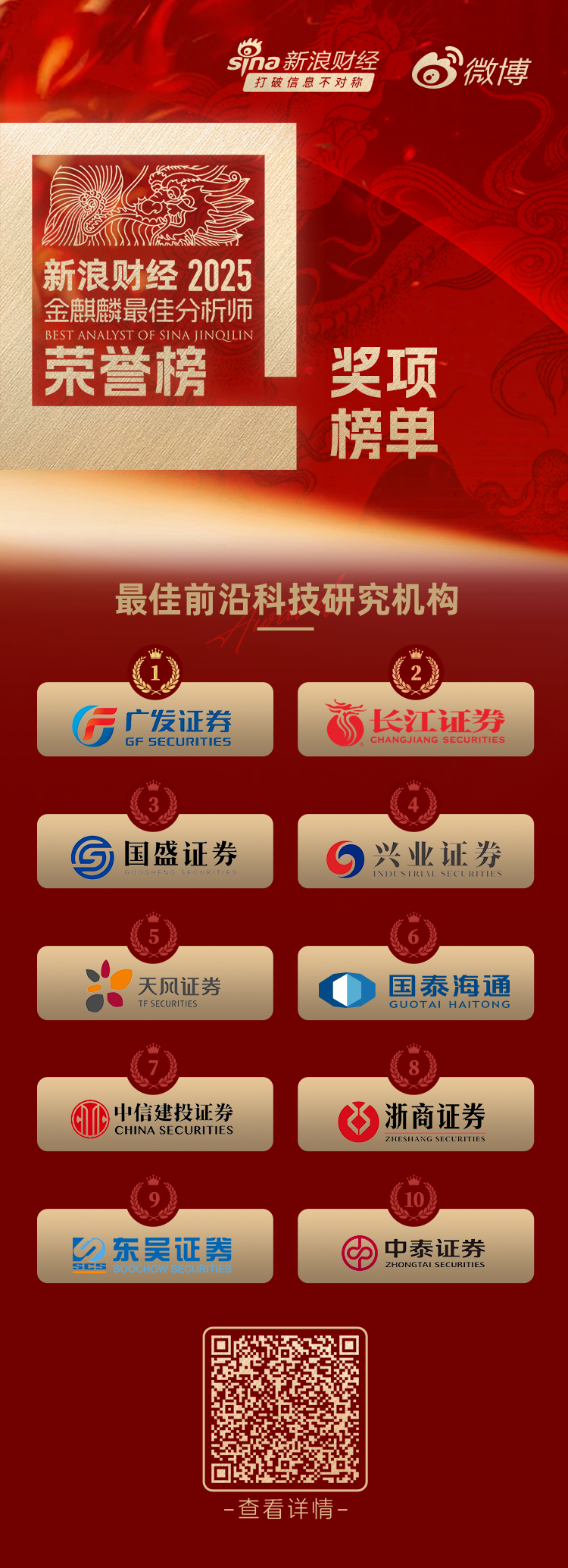 11月28日,2025分析师大会暨第七届新浪财经“”最佳分析师颁奖盛典隆重召开。逾300名权威学者、公私募掌舵人、上市公司董事长、顶级基金经理、首席分析师齐聚上海,共同探讨中国资本市场的未来机遇。同时,第七届新浪财经金麒麟优秀研究机构评选结果隆重揭晓。