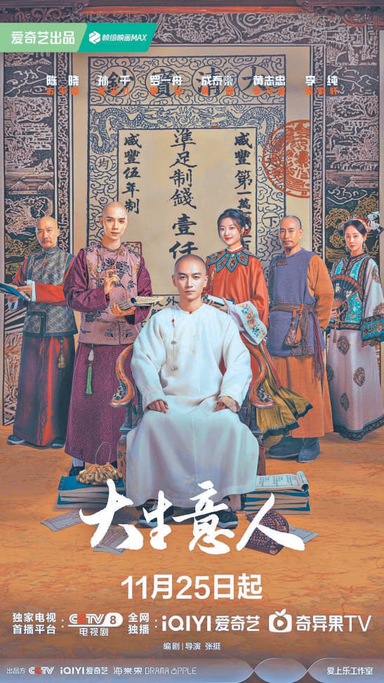 《大生意人》改编自赵之羽的同名小说,张挺最初接触到这部小说时,就被小说中厚重的文化底蕴和丰富的人物故事所打动。故事里,蒙受冤屈被流放宁古塔的书生古平原(陈晓饰)经历了种种奇遇,结识了中国传统的马帮,初涉神秘的山西票号,经营安徽的茶叶和江南的盐业生意,最后与东印度公司交手竞争。他见到了炮口冲着两江总督府的炮舰,和贪婪至极的洋商斗智斗勇,最终成为一代传奇商人。