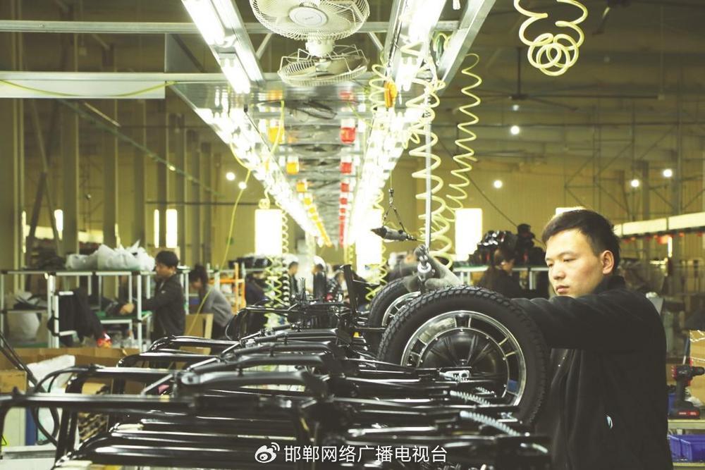 数据显示,前三季度,邯郸市42个特色产业集群实现营业收入4900亿元,同比增长10.6%,其中11个省重点集群实现营业收入3399亿元,同比增长12.9%。图为位于曲周经济开发区的河北德玛仕车业有限公司生产线。 邯郸新闻传媒中心记者 刘学维 摄