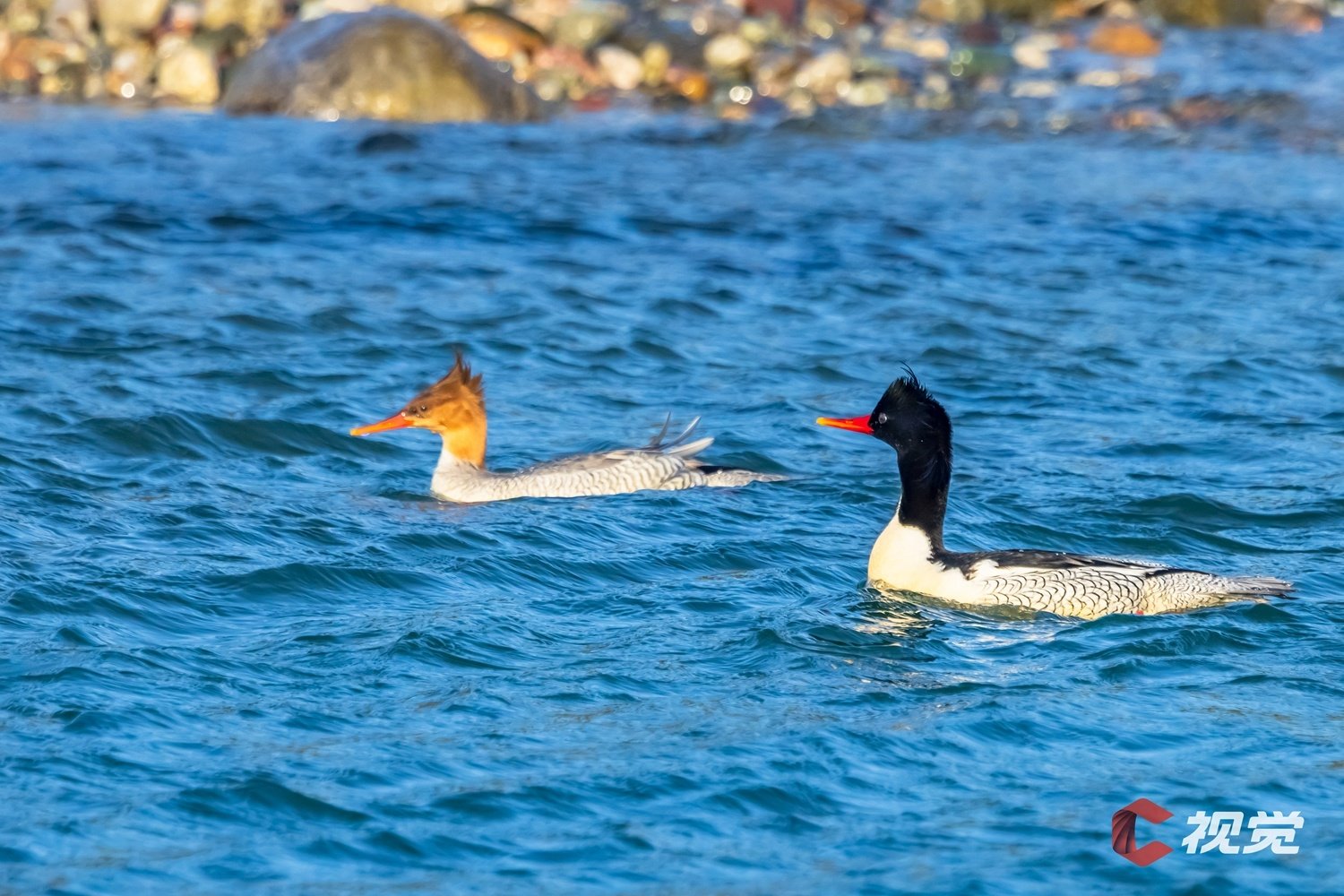 飞抵都江堰外江河段越冬的中华秋沙鸭