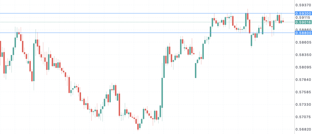 综合而言,当前地缘政治风险仍占据市场主导地位,信息结构本身不支持单边趋势行情。市场同时面临两类相互矛盾的信号:一方面是停火协议、外交接触与通航修复的积极信号;另一方面是军事升级风险与政策强硬表态的负面信号。这种“正反信号共存”的市场环境,使得资金难以形成一致预期,更倾向于在区间内进行反复交易。最终形成的格局是:价格下方有支撑、上方有压力,价格被锁定在持续验证的区间内震荡运行。同时随着前沿消息不断反复,信息真假难辨,市场逐渐进入一种“审美疲劳”状态,冲突释放缓和信号,已经很难再触发类似最初那样的情绪性飙升。在这种背景下,市场似乎正进入一种典型的“拉锯时间”:新闻很多,噪音更大,但真正能够改变价格趋势的新变量却越来越少。此外,霍尔木兹海峡的控制权成为美伊谈判的核心症结。眼下如果推动和平的进程出现任何挫折,油价很容易重新突破每桶100美元,同时一旦地缘冲突紧张局势再现,美元的避险买盘和利差支撑可能快速回归,推动指数再度反弹,从而对纽币构成新一轮强劲压制力。目前,美方已向伊朗谈判团队明确传达了核心底线。由副总统万斯主导的谈判重启能否取得突破,仍是左右中东局势走向的关键变量。技术层面上,当前短线需防范后续若纽币对于高位阻力区域的实际突破失效,则需紧惕价格易受“高位回撤-下行回归”牵引。技术价位则显示如若多头在短线上期望强化动能修复共识,则需位于0.5920区域上方巩固底仓,才将有望通过量能与动能共振推动二次上攻,为汇价击穿该阻力区域后回升测试0.5950目标区域提供潜在技术空间。然而,如若0.5880区域防线彻底失守,则汇价易受到“高位回撤-重心下移”牵引,并导致多头再度面临回补压力,驱动价格再度回落至0.5850一线区域修正的风险加剧。