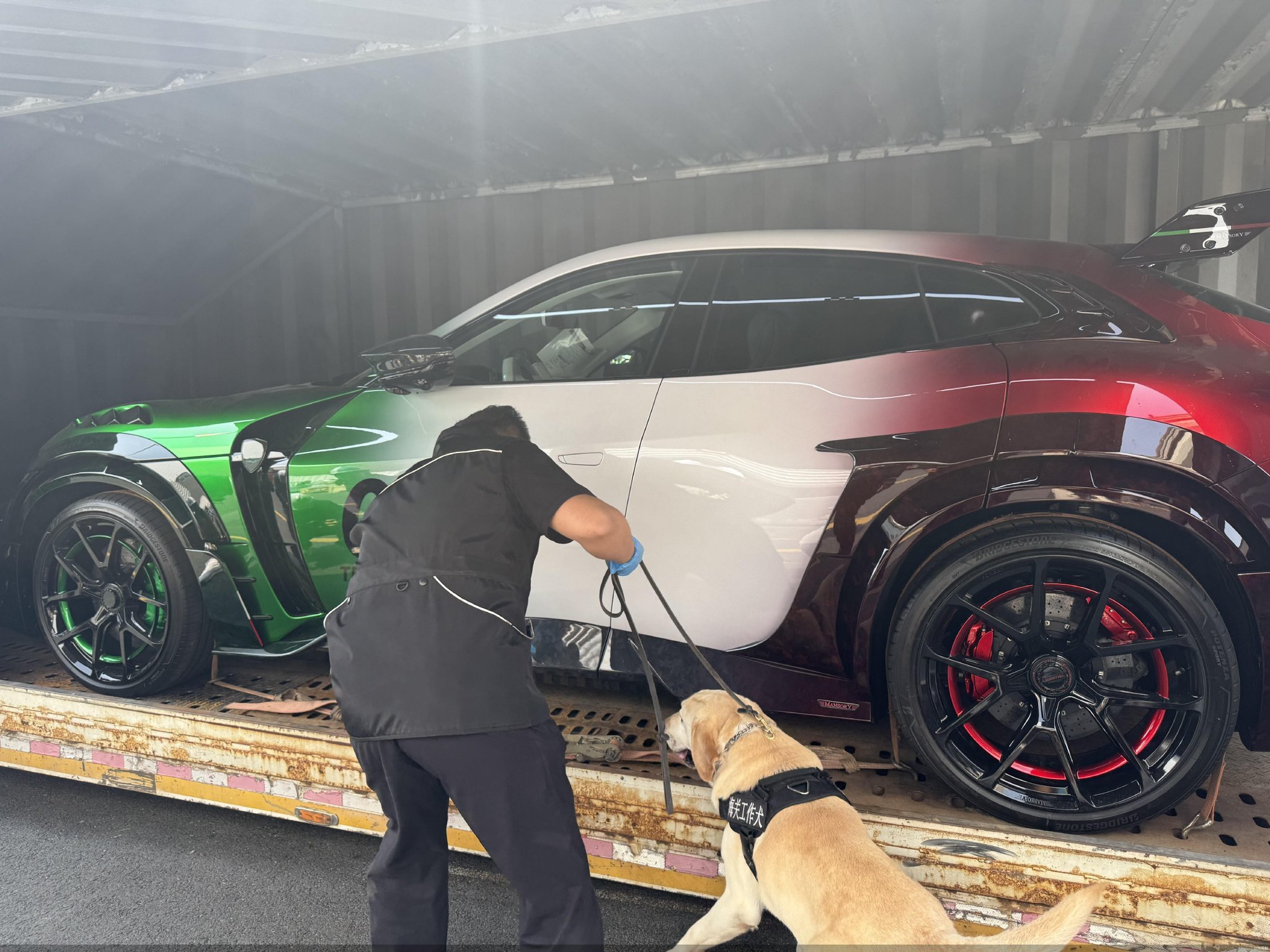 与此同时,迈莎锐展台的两款改装车——2025 年产意大利三色法拉利 Purosangue和2025 年产英国灰色劳斯莱斯库里南,也均以ATA 单证册形式完成通关,运抵展馆后直接进场布展。更值得注意的是,一辆罩着严实车衣的保时捷911GT3 A821型轿车以空运方式运抵首都机场后,直接来到展览场馆,将在本届车展全球首发新款涂装配置。
