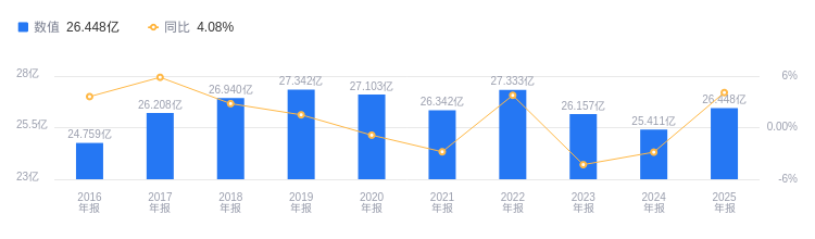 偿债能力方面,2025年公司资产负债率为9.63%,去年同期为10.52%,低于行业平均33.80%,显示出较强的偿债能力。从盈利能力看,2025年毛利率为29.45%,去年同期为27.70%,高于行业平均27.72%,盈利能力良好。