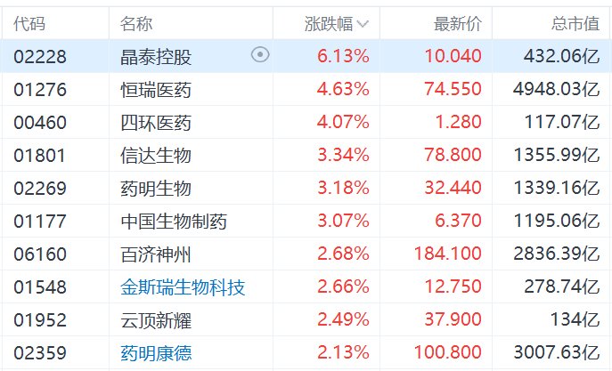 格隆汇1月2日|港股创新药概念股集体上涨,其中,晶泰控股涨超6%,、四环医药涨超4%,信达生物、药明生物、中国生物制药涨超3%,、金斯瑞、云顶新耀、涨超2%。