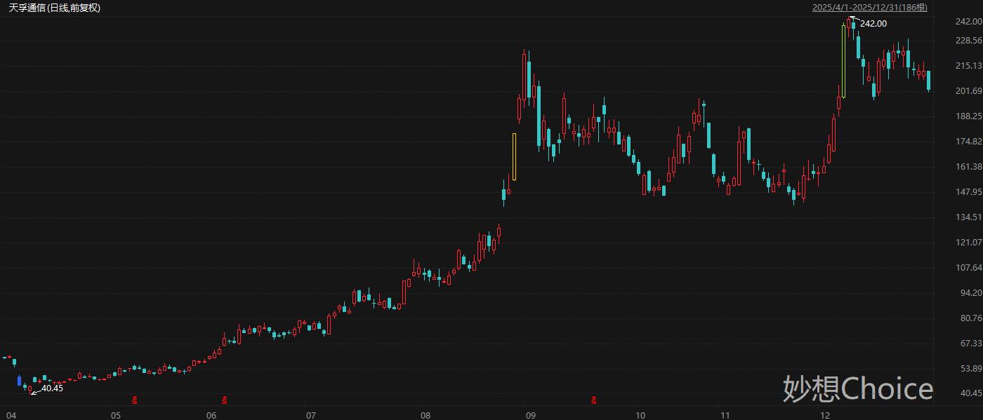 分析师张良卫11月2日研报认为,AI算力需求持续高增,多卡互联驱动光通信需求爆发。在推理场景中,基于TCO、用户体验、模型能力的综合考量,正催生出对更大规模scale-up算力节点的需求,光互连有望凭借在传输距离等方面的优势,逐渐在scale-up场景中应用,迎来倍增需求,天孚通信作为全球有源+无源光器件头部厂商,有望深度受益于此产业趋势。二级市场方面,天孚通信股价自4月低点迄今累计最大涨幅498%。