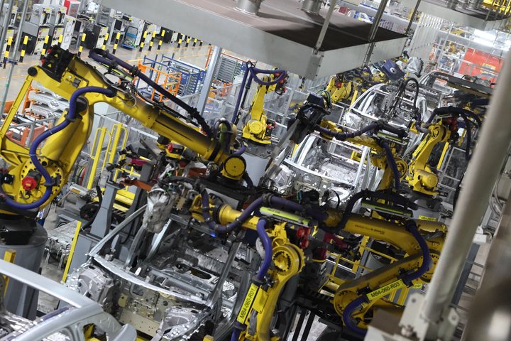 如果说镁伽科技的机器人是永不疲惫的“科学助手”,那么理想汽车常州智能制造基地的机器人就是“生产猛将”。在这里,无数机器人同时作业,协同“造车”的场景随处可见,十分震撼,可实现一分钟下线一台车,彰显了机器人“工友”加持下的高效实力。
