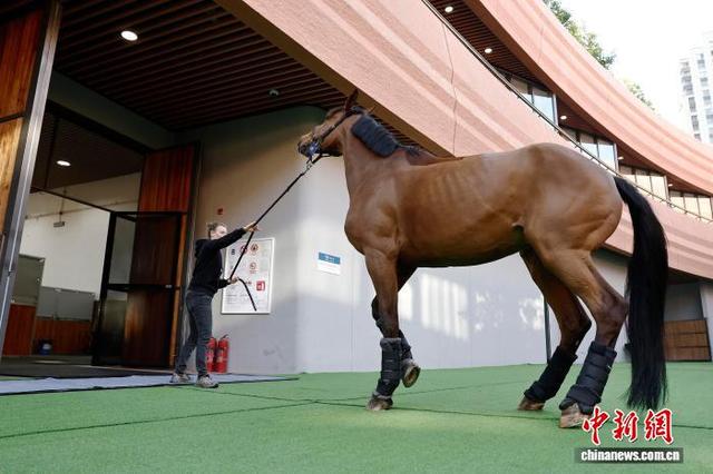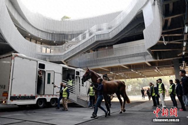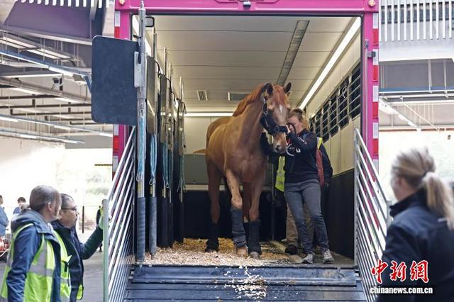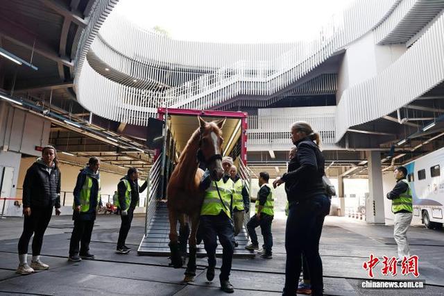 4月26日,工作人员将赛马从车上转移至马厩。当日凌晨2时50分,首批48匹顶级赛马经由专业团队和定制马车的运送,从上海浦东国际机场抵达比赛场馆。据悉,5月1日至5月3日,2026上海浪琴环球马术冠军赛将在上海久事国际马术中心举行,目前赛事各项准备工作已进入冲刺阶段。中新社记者 殷立勤 摄