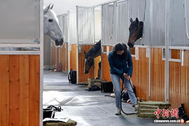 4月26日,工作人员在马厩中准备饲料。当日凌晨2时50分,首批48匹顶级赛马经由专业团队和定制马车的运送,从上海浦东国际机场抵达比赛场馆。据悉,5月1日至5月3日,2026上海浪琴环球马术冠军赛将在上海久事国际马术中心举行,目前赛事各项准备工作已进入冲刺阶段。中新社记者 殷立勤 摄