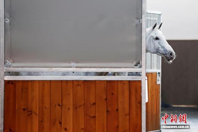 4月26日,赛马在马厩中休息。当日凌晨2时50分,首批48匹顶级赛马经由专业团队和定制马车的运送,从上海浦东国际机场抵达比赛场馆。据悉,5月1日至5月3日,2026上海浪琴环球马术冠军赛将在上海久事国际马术中心举行,目前赛事各项准备工作已进入冲刺阶段。中新社记者 殷立勤 摄