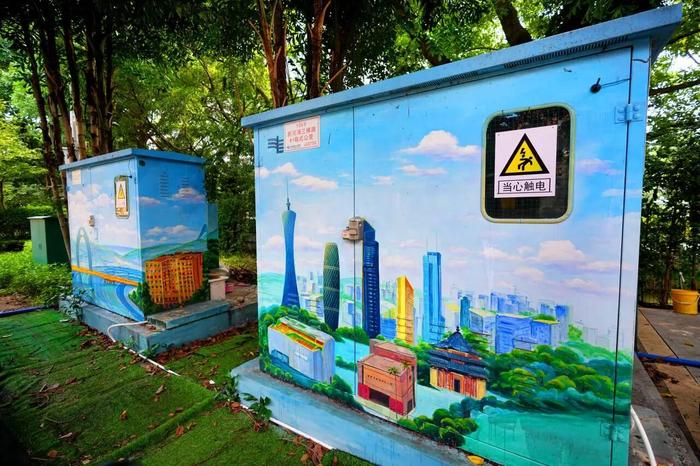 依托“古越今秀”设计师工作室,获聘在地社区设计师的供电企业人员,联动规划部门、街道居民开展“一场景一方案”设计。例如,在农林街道,采用全网首台新型紧凑景观箱变,通过微型化设计减少占地,外立面融入岭南花木图案,助力该街道获评广东省“百千万工程”优秀案例;在省委周边的新河浦路,通过“POWER焕新”行动,将配电箱体彩绘与红色文化、广府民俗结合,联动学校开展电力设施涂鸦创作,让冰冷的箱体成为文化传承载体。