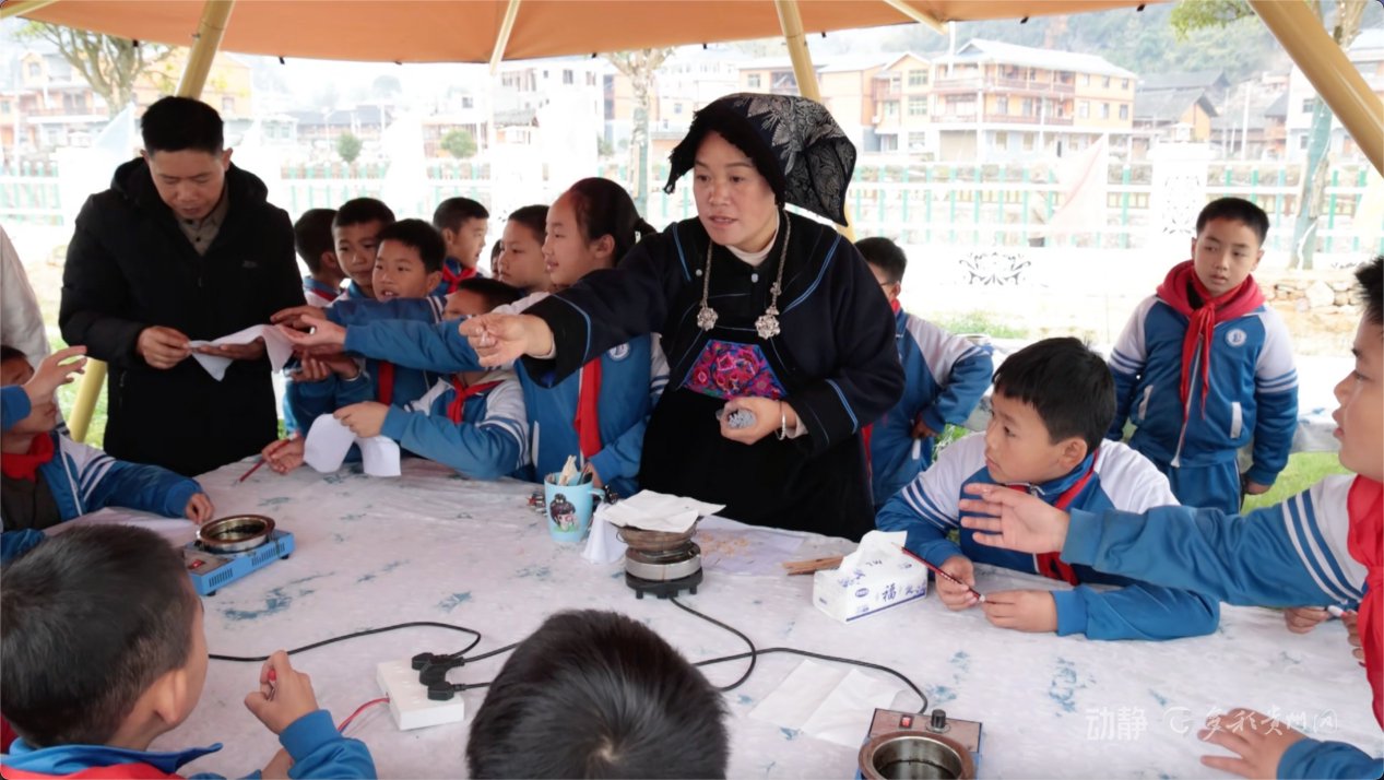 冬日时节,在黔东南苗族侗族自治州麻江县龙山镇河坝村,河坝小幼连贯九年制学校的学生们开启一场融合了非遗技艺、农耕体验与瑶族文化的乡土研学之旅。