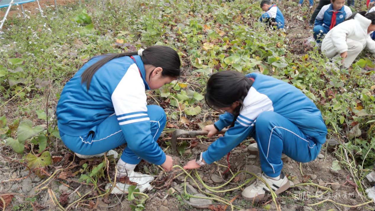 同学们在当地技术人员的指导下,深入了解本地农作物的生长周期与种植技巧,并亲身参与挖红薯、松土除草等农耕劳动,在泥土的芬芳中体会“粒粒皆辛苦”的劳动真谛。