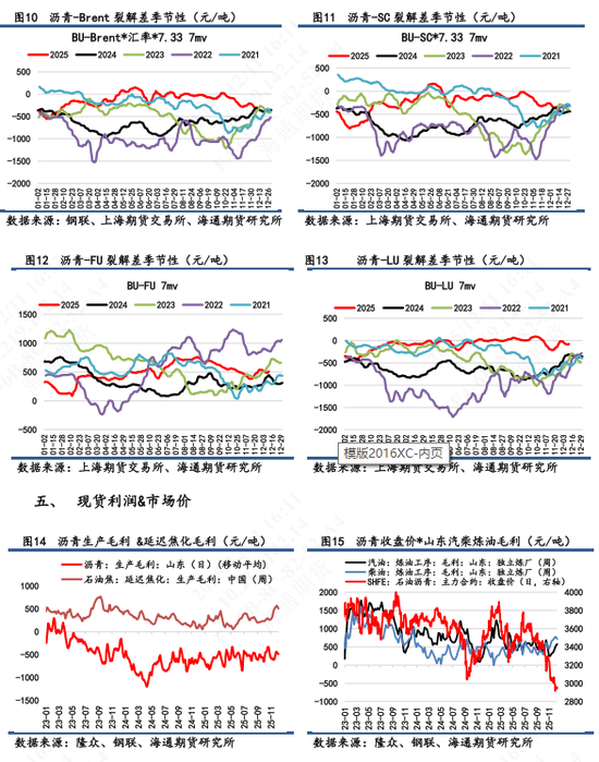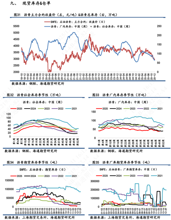 【5】短期展望:基本面上,价格依旧弱势看待,自身上行空间仍受制于需求减弱和库存压力两方面影响,关注冬储行情是否起色。年底前OPEC+增产冲击油价重心,沥青大概率跟跌重心下移。技术面上,沥青价格持续在磨底震荡,预期仍以低位徘徊为主,仍需耐心等待价格企稳信号(参考收盘价2021和2022年季节性走势,沥青后续有望会有一轮小反弹,而今年来看,观测冬储价格行情变化)。