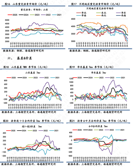 【2】现货市场:①山东重交市场价为2930元/吨,环比持平,现货贴水期货,7天累计-1.0%。山东基差为-30元/吨,7天累计-20元/吨。②华东重交沥青市场价为3150元/吨,环比+0%。华东基差为+190元/吨,7天累计-20元/吨。