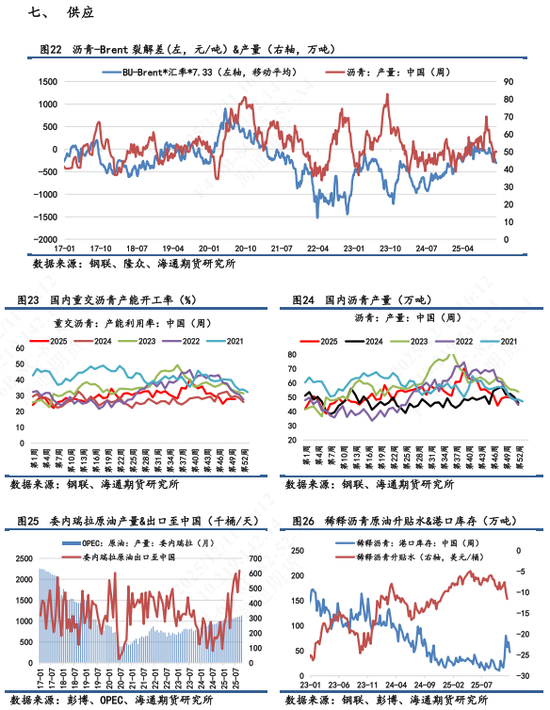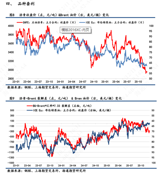 【4】基本面变化:12月10日当天美国总统特朗普宣布美军成功扣押了一艘受制裁的运输委内出口的VLCC油轮,此举标志着两国之间的紧张局势严重升级,也即意味着委内瑞拉每天近90万桶的原油出口将面临受阻。由于委内瑞拉重质原油提炼后的稀释沥青是国内山东沥青炼厂的偏好品种,因为其出口后续动荡将降低稀释沥青贴水幅度,影响国内沥青供应。不过目前来看,此轮消息更为是在情绪上给予沥青早上盘面一定的拉涨空间,但回归目前淡季基本面,仍是事件驱动型的情绪释放。最新的沥青产销周度数据表现一般,稀释沥青贴水虽有收窄,但贴水幅度仍旧有12美元/桶水平。市场冬储行情释放高价货源争夺平淡,市场倾向于低价货源竞争采购。现货市场跌破3000元/吨,市场对冬储价格产生看跌心理或观望心理。后期还是依旧持续关注冬储行情变化。本周暂且关注地缘层面俄乌相互能源设施袭击及南美委内瑞拉风险等因素对油价造成的市场扰动。